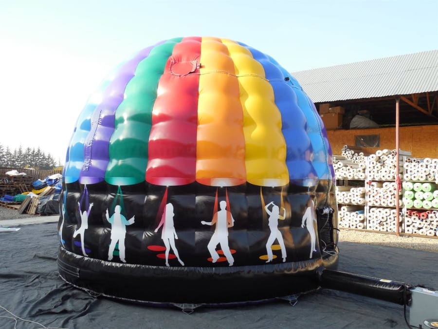The Large Disco Dome gets you in the mood to dance like never before. Produced with electrifying colors, you’ll experience powerful music and illuminating lights while you bounce. Available for indoors and outdoors and includes a rain cover. Lights and speakers are provided.