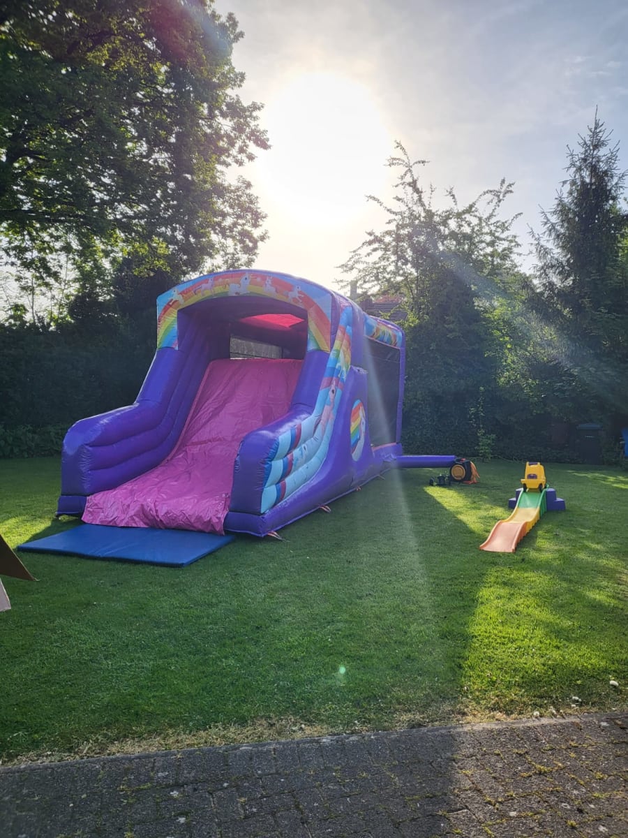 29ft x 12ft disco ready castle and slide with climbing wall.