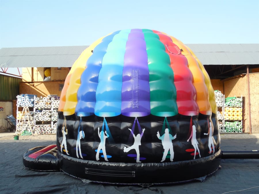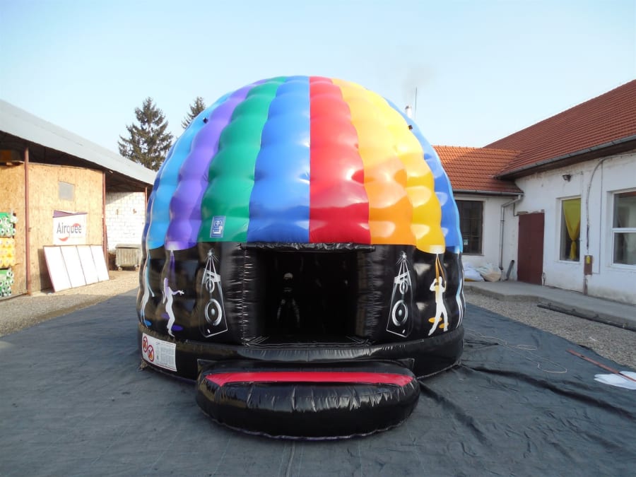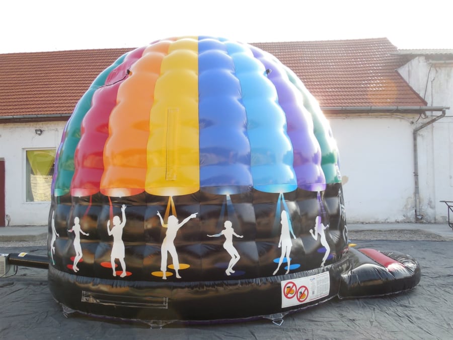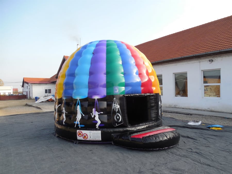 The Large Disco Dome gets you in the mood to dance like never before. Produced with electrifying colors, you’ll experience powerful music and illuminating lights while you bounce. Available for indoors and outdoors and includes a rain cover. Lights and speakers are provided.